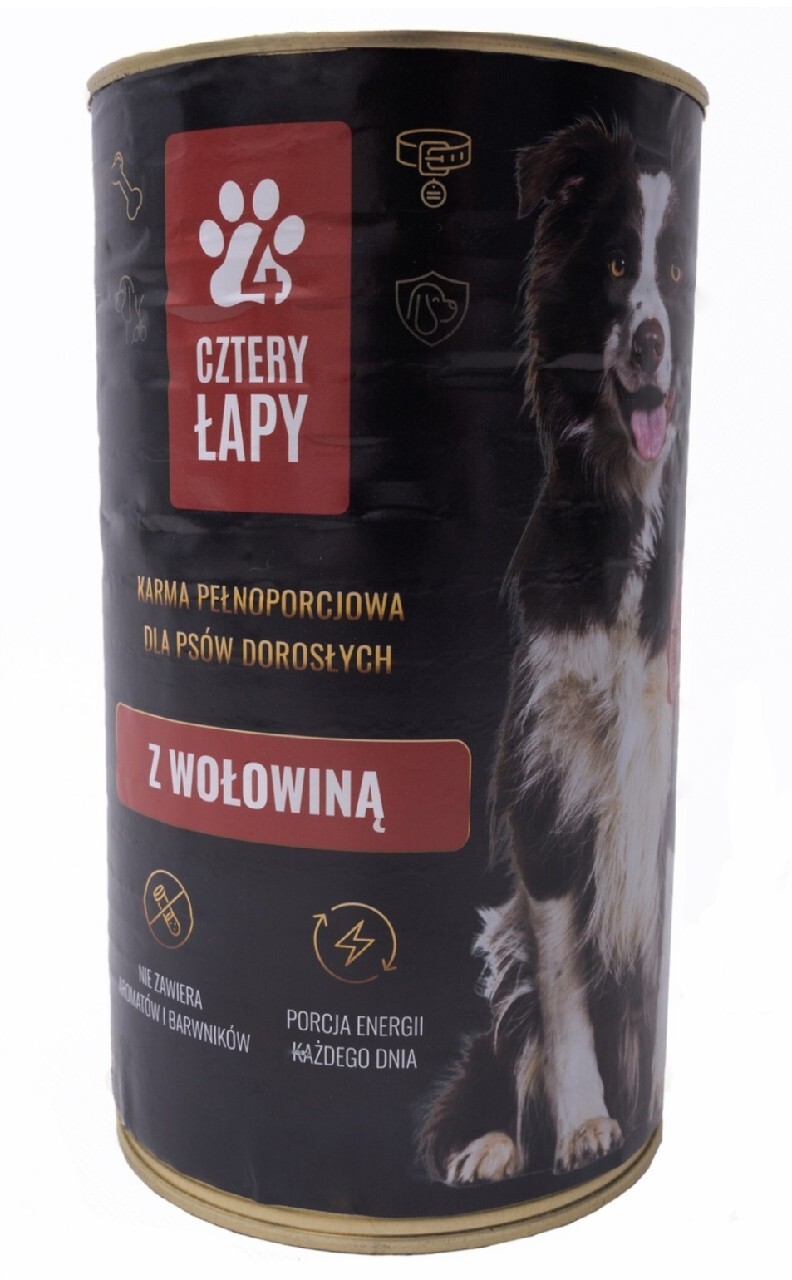 Pełnoporcjowa karma dla psa CZTERY ŁAPY z wołowiną 1250g