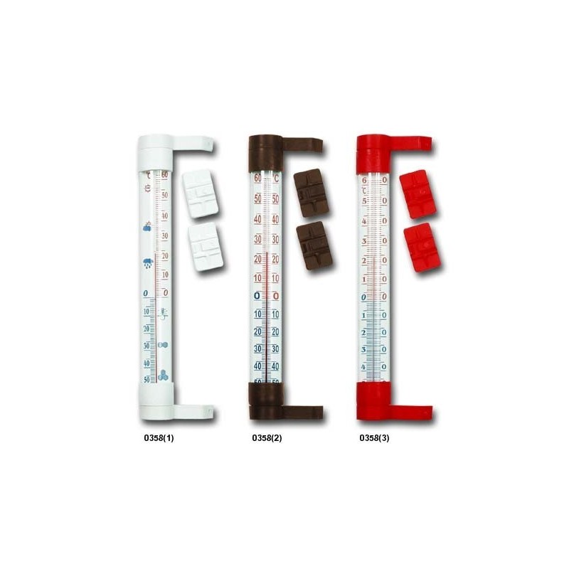Termometr zewnętrzny zaokienny, przeznaczony zarówno do okien drewnianych, jak i plastikowych, łatwy w montażu za pomocą taśmy klejącej, bez wiercenia. Wysokość termometru: 24 cm.